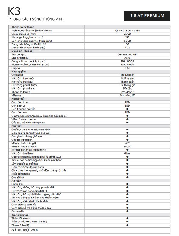 The new K3 mang đến sự đổi mới trong phân khúc C-Sedan tại Việt Nam với thiết kế ứng dụng triết lý mới của KIA, nâng cấp trang bị công nghệ hiện đại dẫn đầu phân khúc. Mẫu xe không chỉ là phương tiện di chuyển mà còn là người bạn đồng hành mở ra những trải nghiệm mới, khẳng định phong cách sống thông minh.